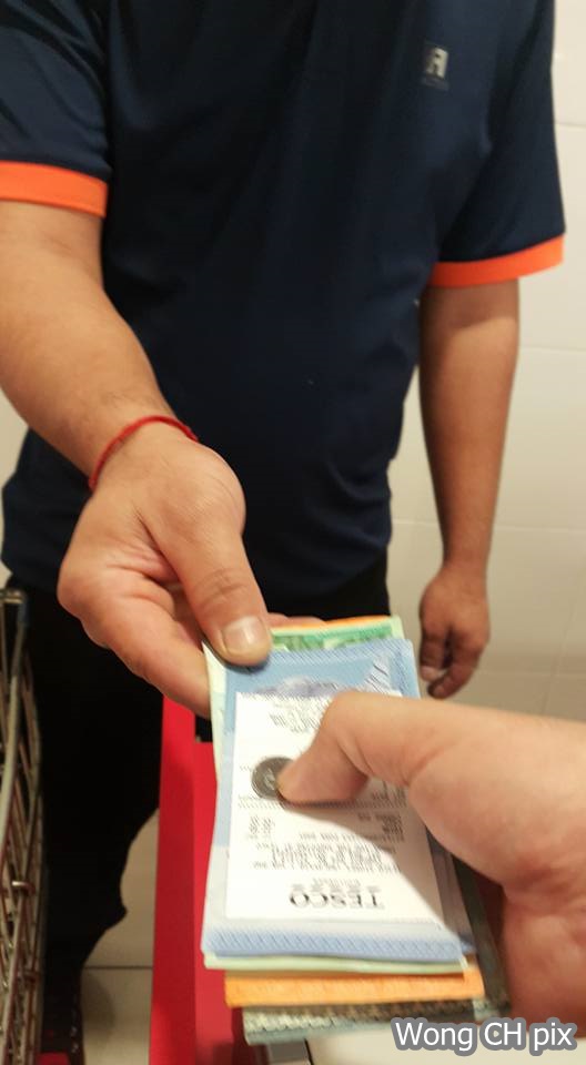 Wong membayar dengan tunai dan menerima bakinya daripada jurujual. Wong menulis: