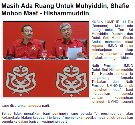 Bernama had headlined it: 'There is still room for Muhyiddin, Shafie to apologise'.