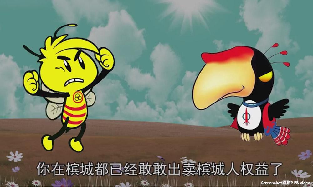 接着,一脸愤怒的小黄蜂就高举双拳,挥动双翼,借槟州事件,当面质问乌巴鸟捍卫砂州主权的能力。
