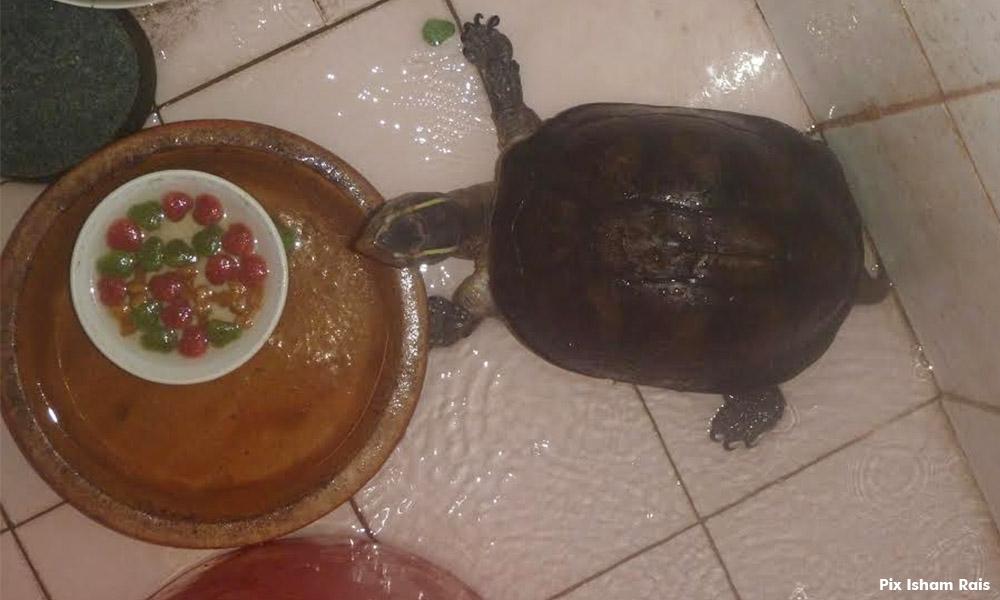 “Mereka ada di dalam rumah ini. Kadang-kadang kura-kura ini akan keluar dan kadang-kadang akan menyorok. Hari ini mereka malu untuk keluar,” katanya.