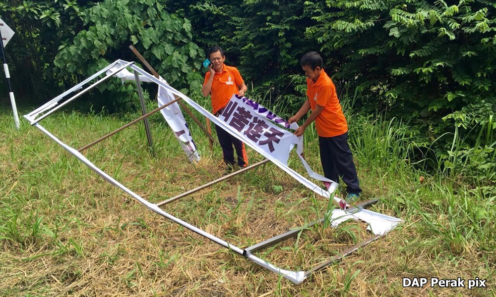 "Three types of billboards put up by us were destroyed. Even the frames were broken," says Perak DAP chief Nga Kor Ming.