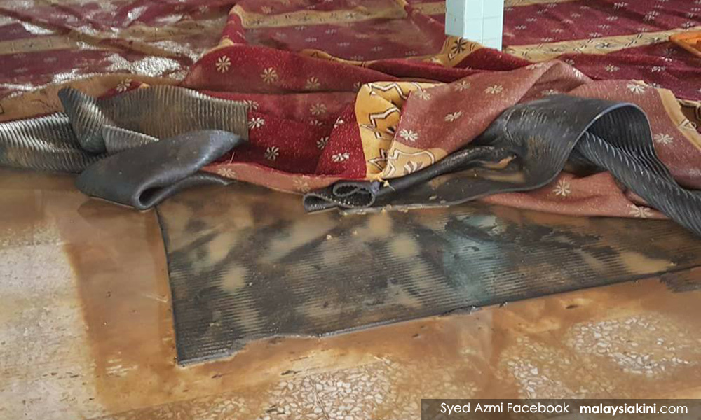 "Tingkat dua (yang menjadi tempat perlindungan) bukan dewan solat utama, tetapi satu-satunya kawasan yang kering, tinggi dan selamat. Orang Islam pun berlindung di situ, dan mereka hanya tinggal selama dua hari satu malam," katanya menerusi Facebook.