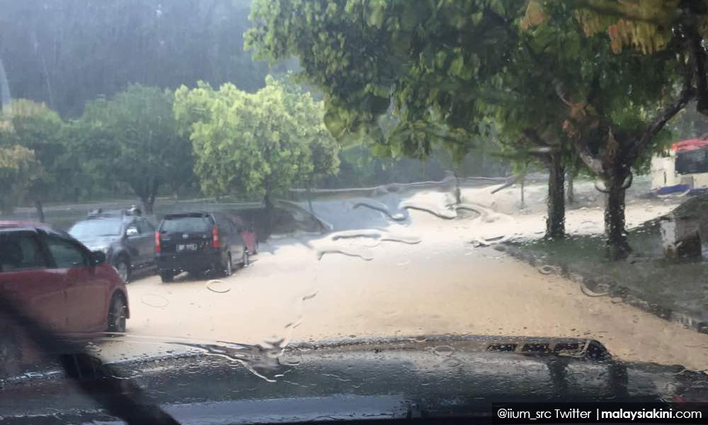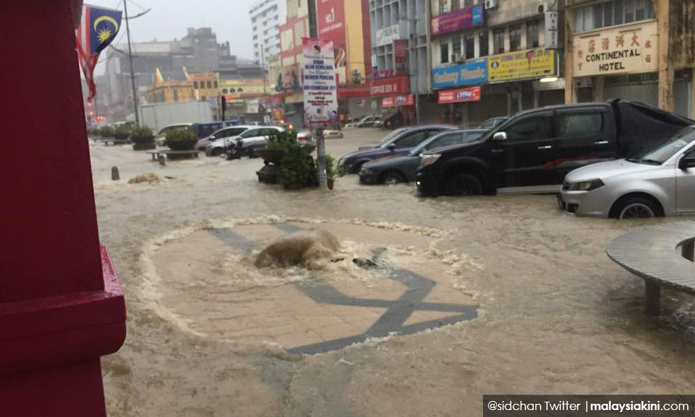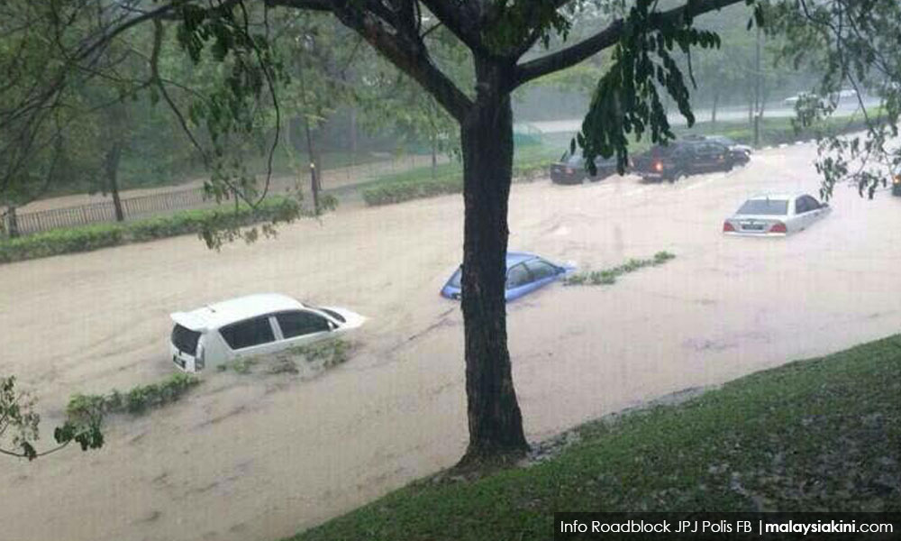 “Hujan lebat yang turun sejak 4 petang menyebabkan kawasan perumahan ini dilanda banjir kilat dan antara faktor lain ialah hakisan tebing sungai akibat penyelenggaraan tidak sempurna.