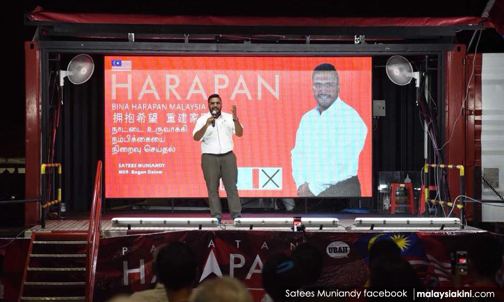 Wartawan Malaysiakini bertemu beliau di Kampong Benggali, Butterworth malam tadi. Satees didapati memasang sendiri bendera parti bersama beberapa sukarelawan. Beliau baru saja selesai siri ceramah kempen HARAPAN di kawasan pilihan raya.
