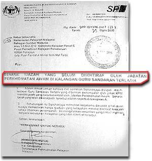这封志期今年8月23日的函件注明,“教育服务委员会仍然发现一些持有尚未受公共服务局承认的学位的受训临教(Guru Sandaran Terlatih)被教育部派去执教......委员会希望教育部能够给予合作,确保只有具备受政府承认的资格的人士,被派去执教”。