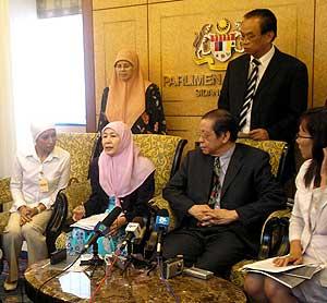 另一方面,一名于5年前也碰到类似遭遇的诺拉兹玛(右图左一)今日在公正党主席旺阿兹莎、林吉祥、郭素沁及另外数名反对党议员陪同下,在国会揭露她所受到的遭遇。