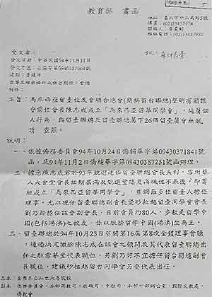 出示台湾教育部函件指有势力操纵