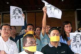 大约100名关心新闻自由的人士,响应“反操纵新闻黑手联合行动”号召(Action against Political Interference in the Media”,API-Media),今天上午11时聚集在人权委员会办公室底层,针对裸体蹲站案和两位《中国报》总编受对付辞职事件提呈备忘录。