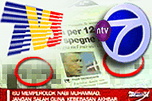 据报道,上述两家电视台在各自的声明中,对本身在无意中于新闻时段里头,播放亵渎回教先知漫画画面一事感到极度遗憾。