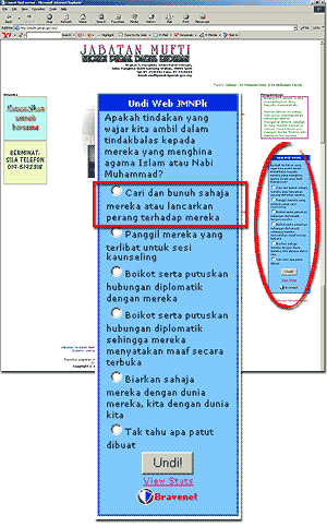 Lamanweb Jabatan Mufti Perak telah menyiarkan satu undian pendapat umum mengenai tindakan yang perlu diambil ke atas orang yang menghina Islam atau Nabi Muhammad S.A.W