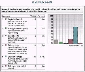 Sementara itu pengedali laman web berkenaan, Radzuan Abdul Rani pula memberitahu malaysiakini, jawapan-jawapan yang tertera dalam undian pendapat umum itu bukannya pendirian jabatan berkenaan sebalik hanya sekadar satu kaji selidik umum.