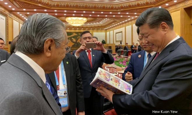 丘光耀还在面子书发布照片,其中显示习近平在翻阅该漫画,马哈迪也在场。