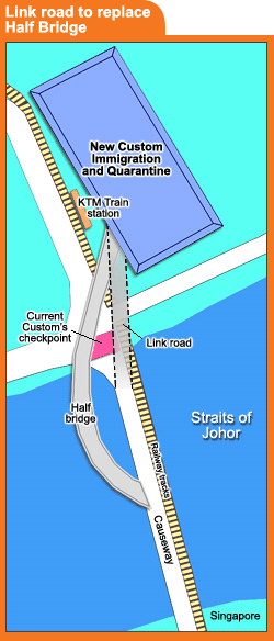虽然,政治人物、媒体和民间人士心中纵有重重的疑问,国库首先就必须为腰斩弯桥计划而赔偿承包商一亿令吉,以及须为即将完工、耗费比美景大桥还昂贵的新建移民、检疫及关税大厦(CIQ)寻找适当用途,避免其成为另一个华而不美的“白象”计划。CIQ大厦耗资约12亿令吉,而美景大桥则是10亿令吉。工程部长三美就即刻指示美景大桥原承包商南方门户(Gerbang Perdana),兴建通道来衔接新关税大厦和原有的新柔长堤,以取代被腰斩的美景大桥。