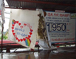 他说,2001年白沙罗华文小学(白小原校)被无理关闭,之后村民、家长们展开白小保校运动,同时坚持保校的家长们将其入校无门的子女,送到在阮梁圣公庙旁的临时校舍上课。