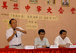 昨晚在芙蓉森华堂举行的“党团共存,是华社助力?还是阻力?”讲座上演了一场精彩的辩论,甲华堂副主席兼甲马华宣传秘书文亚苏,以其三寸不烂之舌与另外两位主讲人和其他出席者针锋相对,从党团是否应该共存,谈到马华应该扮演的角色与华社的出路,争执不休直到晚上11时方结束。