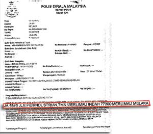 为了确定报案书的真实性,《当今大马》今日致电万里望警局查询,接电的警官莎尔米雅根据报案书的编号,证实了报案书副本的内容,包括报案人和接受报案的警官的身份,以及上文提及的地址。