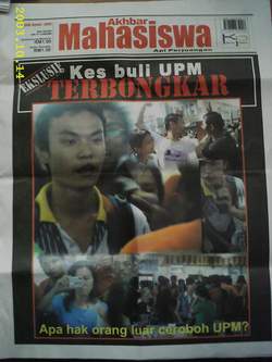 这份特辑的头条标题为《独家报道:博大欺侮事件大揭密》(Kes buli UPM terbongkar,ekslusif),全部8页内容皆攻击博大前进阵线,将该阵线描写为校园的头号公敌,还以事发当天人在现场的学运国内事务处秘书李发成,作为封面人物。它的副题是“外人究竟有什么权利硬闯博大?”。