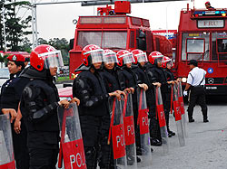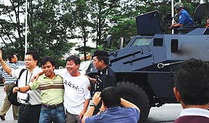 让在场者啼笑皆非的是,警方竟然派出两辆从未出现在示威场合的装甲车。结果不仅无法起威慑的作用,反而成为示威人群竞相摆“甫士”合照的景点,结果在逗留不及5分钟后即尴尬离开。