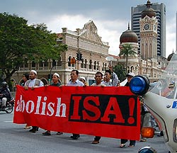 约百名来自反对内安法令联盟(Gerakan Mansuhkan ISA)的人士今日前往大马人权委员会办公室前举行约2句钟的示威,要求委员会即刻插手协助释放所有已被扣留超过4年的内安法令扣留者,并要求政府立即废除《1960年内安法令》。