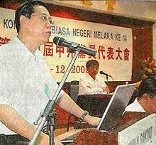 王志坚认为林冠英(右图)此举是要转移视线、模糊焦点,因为他在中委会议中,不愿意回应本月12日召开的紧急会议是否符合党章,也不愿意交待雪州变天风波的来龙去脉。