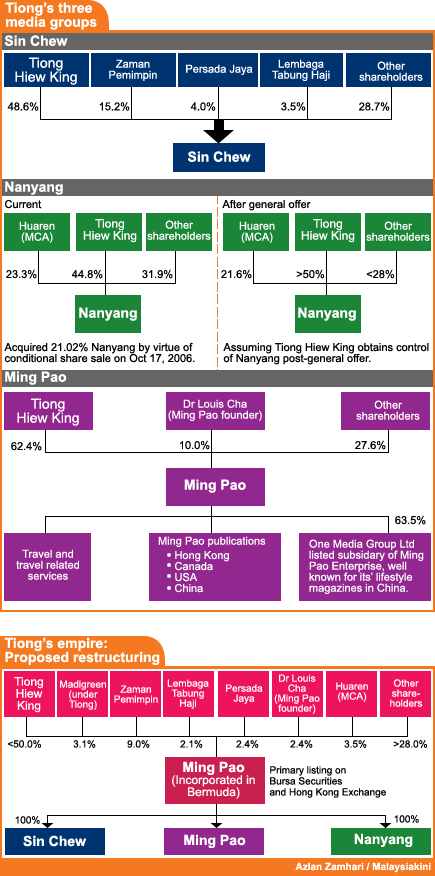 在合并前,张晓卿皆是星洲、南洋及明报的大股东。他拥有48.6%的星洲媒体集团股权,以及44.8%南洋控股股权(全面献购之前;全面献购之后超过50%),以及62.4%的明报股权。