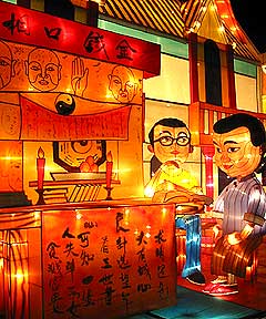 这次灯会展除了展现三大中族风情的“历史走廊”外, 也展出另两个制作主题,即春节系列及宗教系列。春节系列包括“中国结入门”,“十二生肖迎宾门”及“祥龙金童”, 而宗教系列包括“弥勒笑佛”及“小沙弥”。
