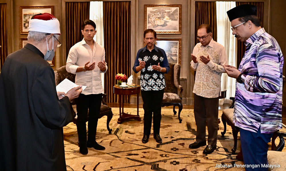 Sultan Brunei, Sultan Hassanal Bolkiah bersama anakandanya, Pengiran Muda Abdul Mateen Bolkiah mengadakan pertemuan dua hala dengan Perdana Menteri, Datuk Seri Anwar Ibrahim bagi memperkukuhkan hubungan Malaysia-Brunei, semalam.