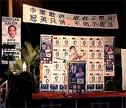行动党从大约晚上8时,以客家山歌为热烘烘的政治讲座掀开序幕。行动党元老俱乐部主席刘德琪和成员朱镜湘以自编的客家山歌,对马华做出冷嘲热讽,赢得新村居民热烈的掌声。