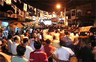 马接州议席补选前夕,马华与行动党在马接峇鲁新村街头街尾各自举办最后一晚的政治讲座,在双方扩音器对打的情况下,几乎全村人倾巢而出见证这难得一见的热闹场面,把整条小小的街道挤得水泄不通。