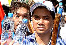 (十)4月28日双溪达拉投票站,国阵支持者向公正党支持者丢抛汽车零件、鸡蛋和水瓶。(参考《当今大马》 录影 )