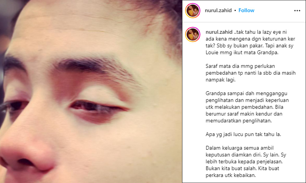 Nurulhidayah berkata, anaknya turut menghidap penyakit sama yang disebut sebagai “lazy eye”.