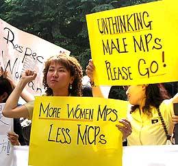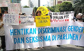抗议者所展示的布条包括“两位议员必须道歉”、“歧视女性者不配当领袖”、“国会应停止性别歧视”,以及卡通漫画要求国会议员停止愚弄女性等等。