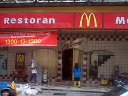 位于敦霹雳路的一间麦当劳快餐店,由于水灾发生时人群避难涌入,而造成玻璃门被挤破,而暂时使用三夹板充当大门和墙壁。