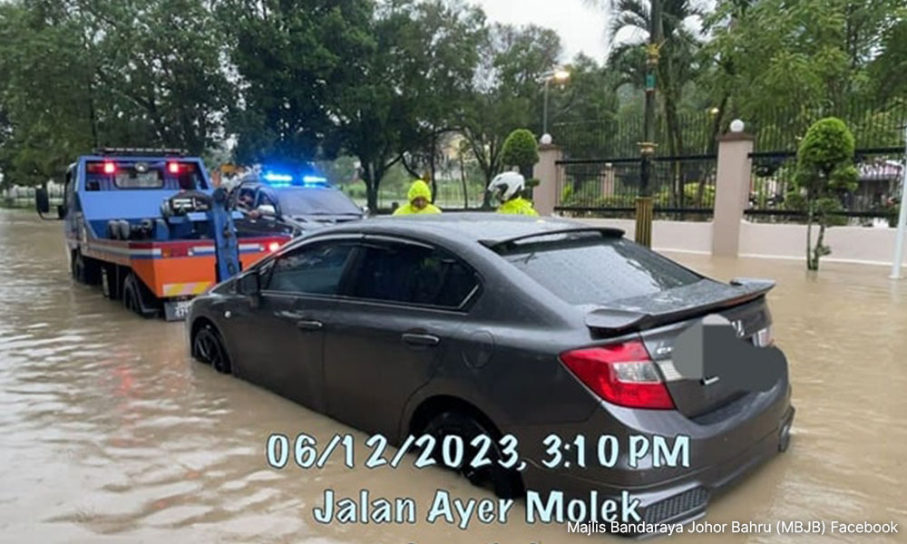 "Di Jalan Ayer Molek terdapat kenderaan yang terperangkap dan penguat kuasa MBJB bertindak memberi bantuan pengalihan kenderaan berkenaan," kata majlis itu.
