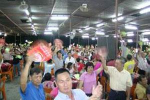 迈入7周年白小保校运动筹款晚宴,声势不逊往年,昨晚于雪州八打灵再也17区停车场热烈举行,不但宴开180席,更汇集了约2000名从全国各地赶来赴会的华教人士,并一举超越了原本所订下的25万令吉筹款目标。
