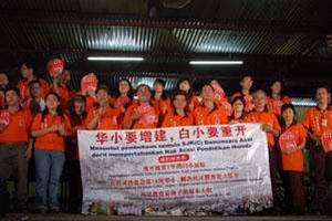 全场出席者更在司仪的号召下,举起扇子,一齐站起来4次高喊“华小要重建,白小要重开!”,把现场气氛冲到最高点。