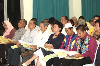 而最令人感到惊奇的是巫统总部竟也派出一男一女的两名代表即巴哈隆(Baharom Bill,左二)和西蒂(Siti Zulaila,最左图)参与今日的大会,并全程出席聆听研讨会。现场唯独不见国阵华基政党如马华和民政的代表。