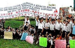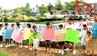虽然目前属于学校假期,但是这批留校参加补习班的小学生,在学校董家教三机构安排下,於今早10时许开始,细雨纷飞下在距离工地仅有数十公尺的学校草场拉布条和海报,呼吁教长和其他华裔部长关注师生的健康与安全。