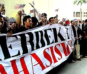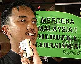 他们所持着的布条写着“大马独立,学生独立。请将校园自学生事务局和残暴的校园选举手中释放!”(Merdeka Malaysia, Merdeka Mahasiswa. Bebaskan kampus dari penjajahan HEP & sistem pilihanraya kuku besi!)。