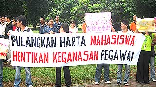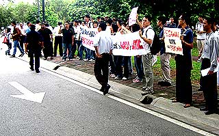 50余名来自国内学生组织和非政府组织的代表今日是在早上10时从现代语言和通讯学院游行到博大校门,以呈交备忘录于校长聂慕斯达法,抗议校方企图通过扣押电脑对俞扬阳进行恐吓和骚扰。