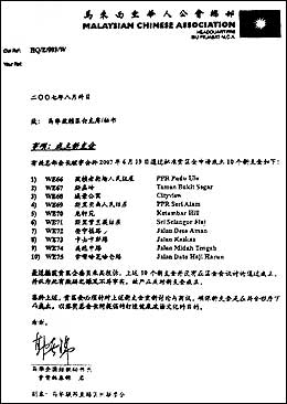 第一封志期今年5月20日的书函,是由马华蕉赖区会主席郑福成致给马华全国组织秘书韩春锦,指该区会已通过成立10个新支会。