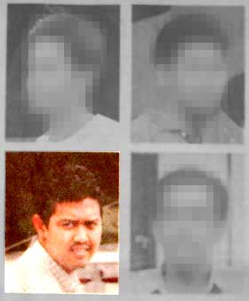 注:这是《马来西亚前锋报》所刊登的阿兹威拉的照片。照片中打蒙的另外3人是已经获释。该报章已经在今日全国版第4版刊登更正启示,并且做出道歉。)