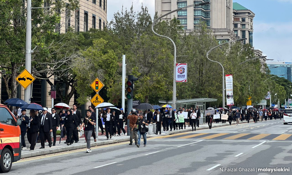 这场在槟城举行的“公正之行”于今早11点开始,约有50名律师参与,从Jalan Green Hall出发,步行至槟城高庭。