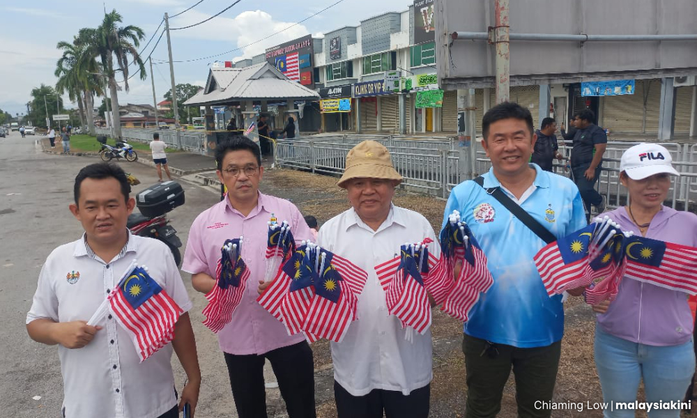 行动党全国元老俱乐部主席赖国平则带领的党员于下午4点抵达,向路人免费派发国旗。