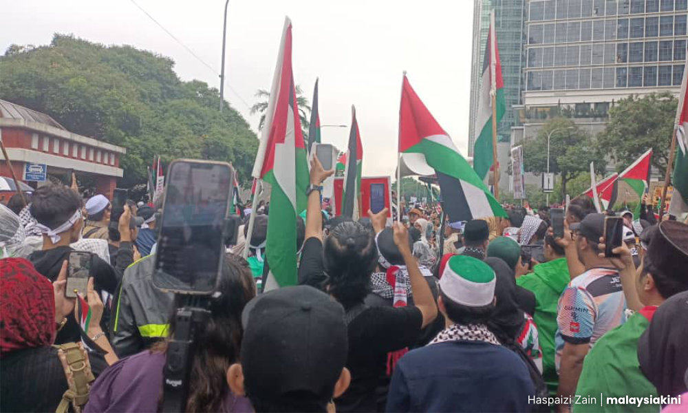 Himpunan yang menghimpunkan NGO serta pemimpin politik daripada pelbagai parti itu bertujuan menyatakan bantahan terhadap kekejaman Israel.
