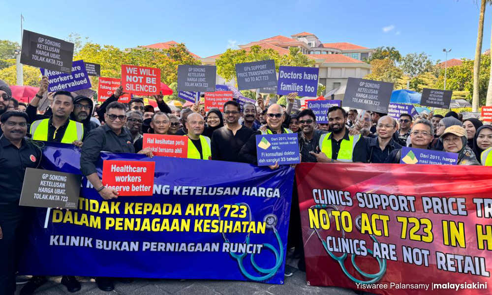 Pada Mei lalu, sekumpulan doktor swasta menyertai protes anjuran Persatuan Perubatan Malaysia (MMA), sambil membawa plakad yang mempertikaikan keadilan kadar caj RM35 — jauh lebih rendah berbanding tukang kunci yang mengenakan caj RM200 dan tukang paip RM150.