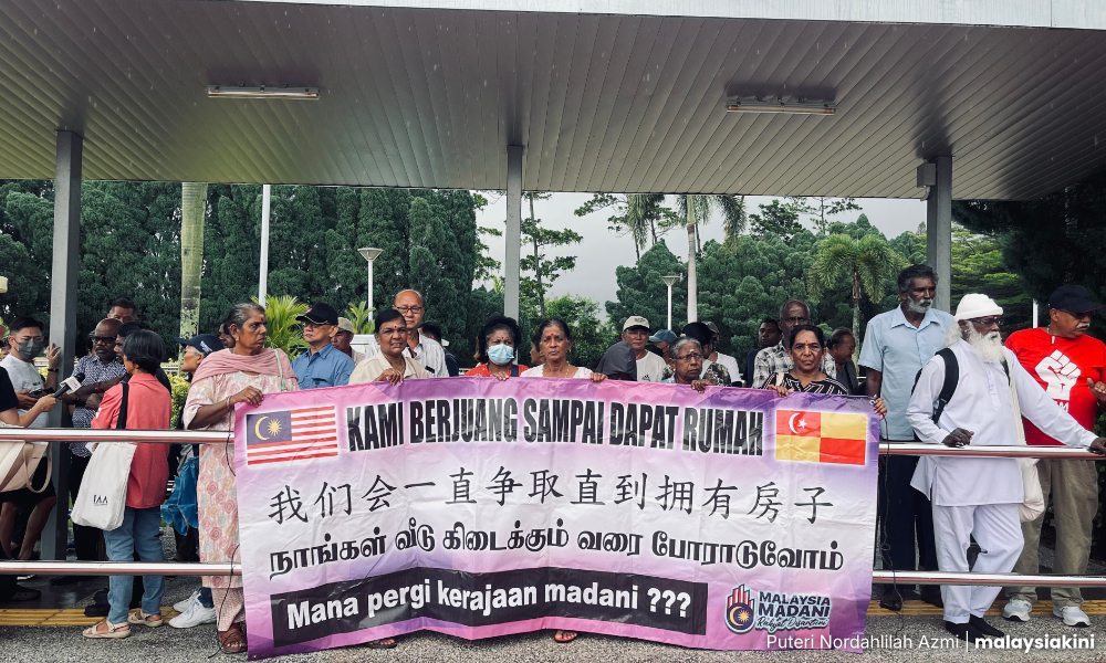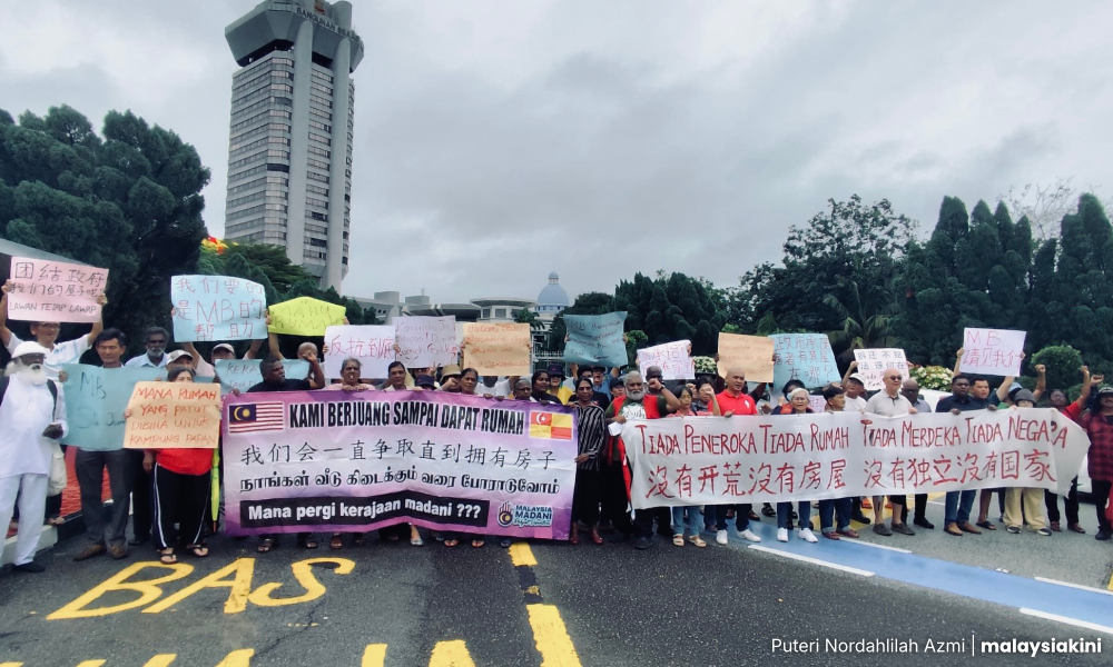 Walaupun dalam keadaan hujan lebat, kira-kira 80 penduduk bersama aktivis Parti Sosialis Malaysia (PSM) berhimpun bagi menuntut kerajaan negeri menunaikan janji dan menyelesaikan isu perobohan rumah mereka.