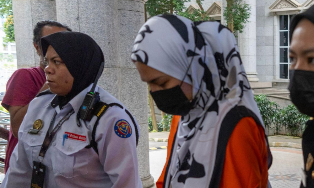 Ketiga-tiga individu, yang memakai baju lokap SPRM berwarna oren, serta bergari kemudian dibawa memasuki kompleks mahkamah oleh pegawai SPRM.
