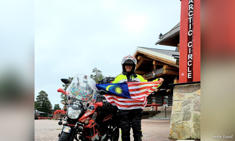 MALAYSIANSKINI | Berbekalkan tangki petrol penuh dan keimanan, Anita Yusof, 58, memacu motosikal kesayangannya, Yamaha FZ150 — seringkali bermula seawal subuh — dalam perjalanan kedua Global World Ride merentasi tujuh benua.
