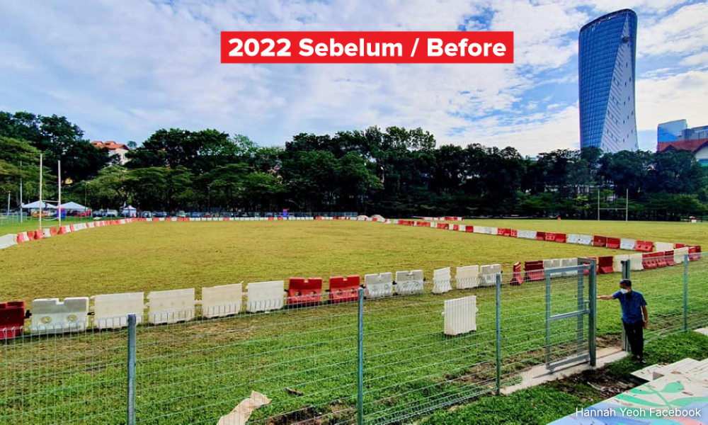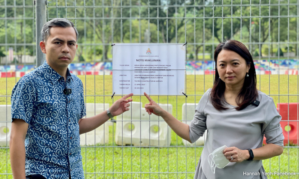 Pada Ogos 2023, Yeoh dan Fahmi (gambar bawah) pernah mengadakan sidang media di lokasi sama bagi membantah keputusan kerajaan pimpinan PN ketika itu untuk mendirikan pagar besi di sekitar padang tersebut, yang sering digunakan sebagai lokasi perhimpunan oleh para penunjuk perasaan.